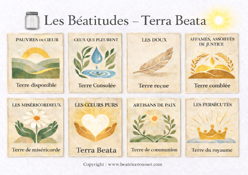Passionnée par la lecture symbolique de la Bible (Je ne m’intéresse pas à sa réalité historique ou religieuse) et convaincue de son utilité de nos jours, pour « remettre l’église au milieu du village » 😁, je propose des actions pour nous en inspirer : Groupes de discussion, soirée par thématique, conférences … Sortis du bocal, nous vivons la Terra Béata.